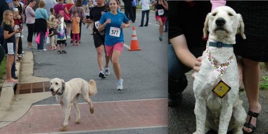 Dozer, a three-year-old “goldendoodle,” saw a bunch of people run by his home in Fulton, Maryland. He became so excited that he crossed his invisible fence and started running with them. Seven miles later, Dozer crossed the finish line of the Maryland Half Marathon, a fundraising event for the University of Maryland’s Greenebaum Cancer Center. The runners did not know Dozer was alone. He returned home the next day, looking so tired that his owners took him to the vet. Word got around, and they realized Dozer was the dog on the marathon’s TV coverage. Marathon organizers gave Dozer a special award. Now he has his own runner’s page and Facebook fan page -and he’s raised $21,000 for the cancer center!