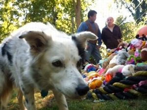 Border collies are known for their intelligence. Chaser is a border collie that belongs to a retired psychology professor. John W. Pilley read about a dog who learned to recognize 200 German nouns, and decided to see if Chaser could learn words as well. Working with the dog for around five hours a day, Chaser learned to recognize the names of a couple of new objects every day, to a current total of 1,022 nouns! Along the way, Chaser got the idea that learning words is her job, so now the 82-year-old Pilley has a hard time taking it easy, as Chaser demands her lessons! Pilley is now teaching Chaser verbs and basic grammar.